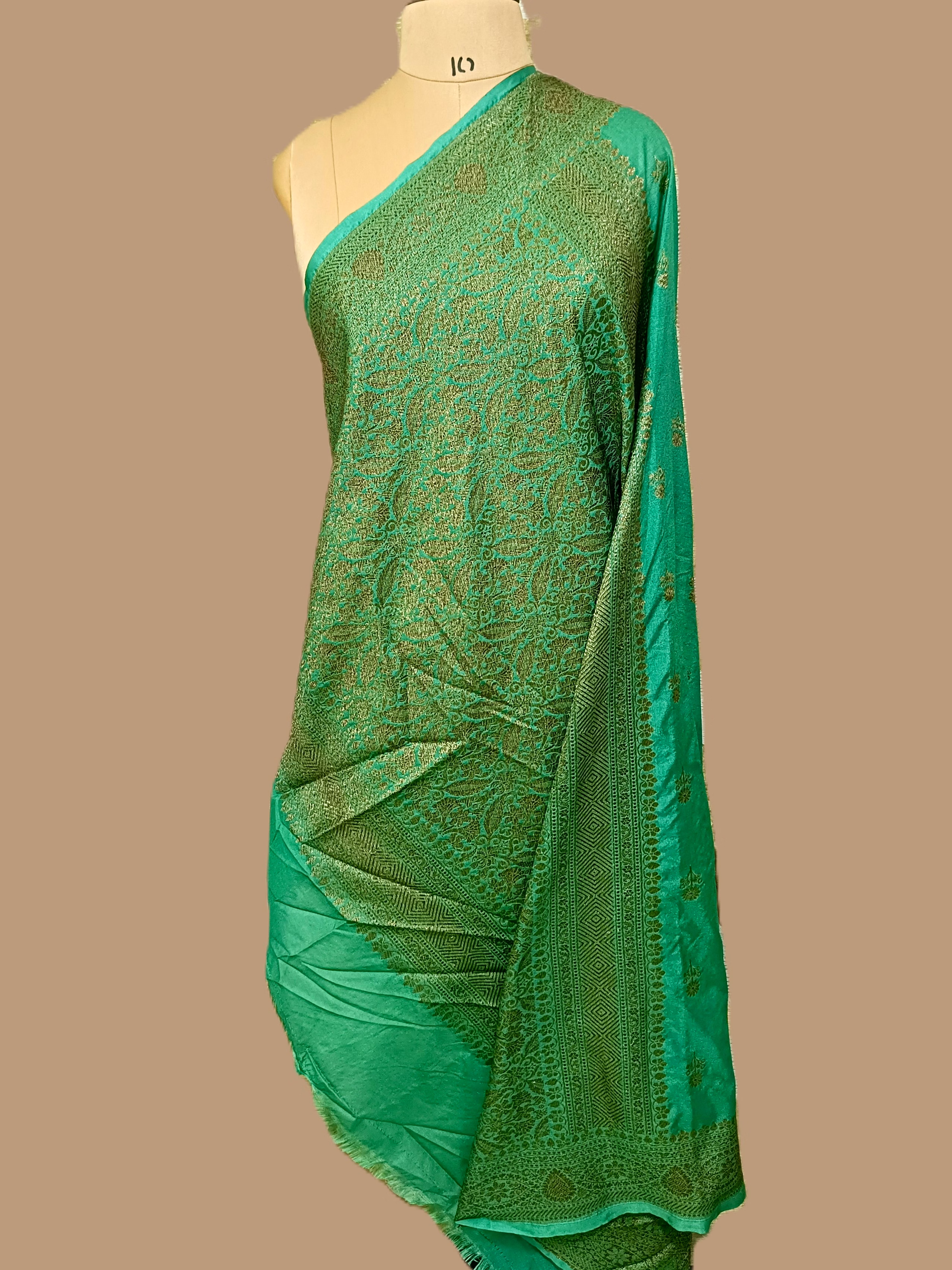 Elevate your style with the exquisite Anguri Green Banarasi Silk Saree. Delicately crafted for those who appreciate elegance and tradition. Make a lasting impression with this timeless piece.