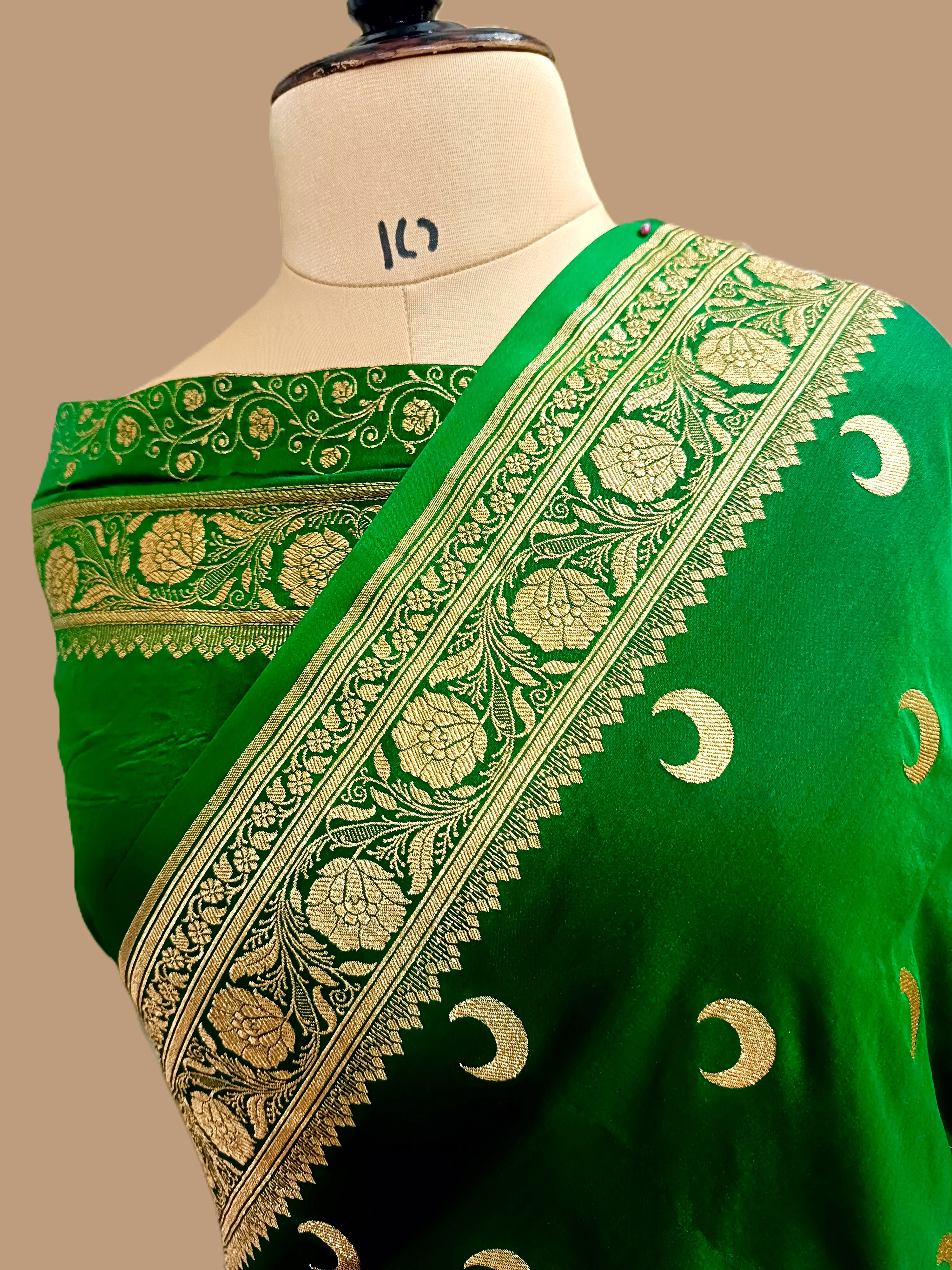 Elevate your style with our exquisite Bottle Green Katan Silk Banarasi Saree. Crafted with precision, this saree embodies elegance and tradition. Make a statement at any event with this timeless piece.