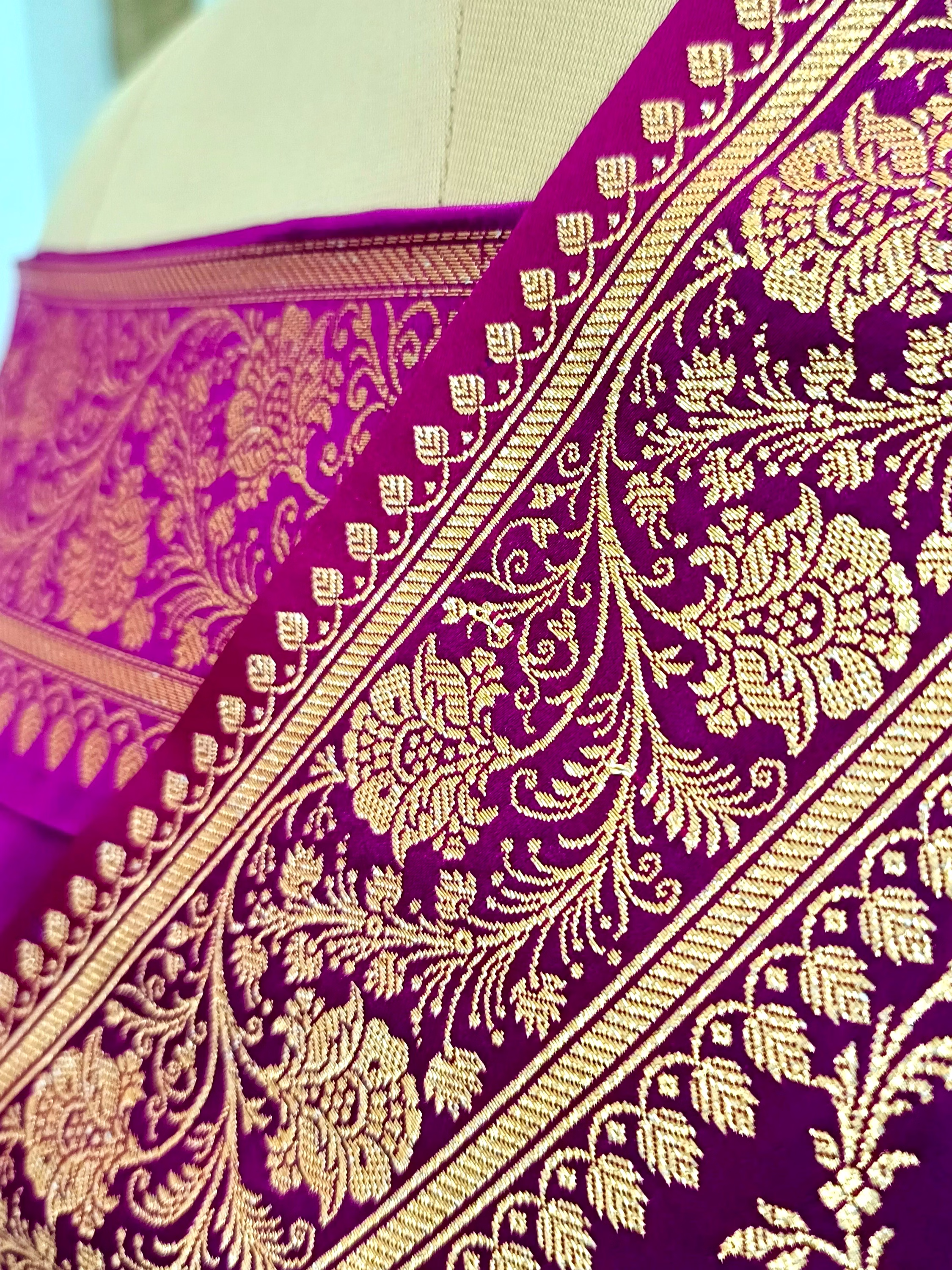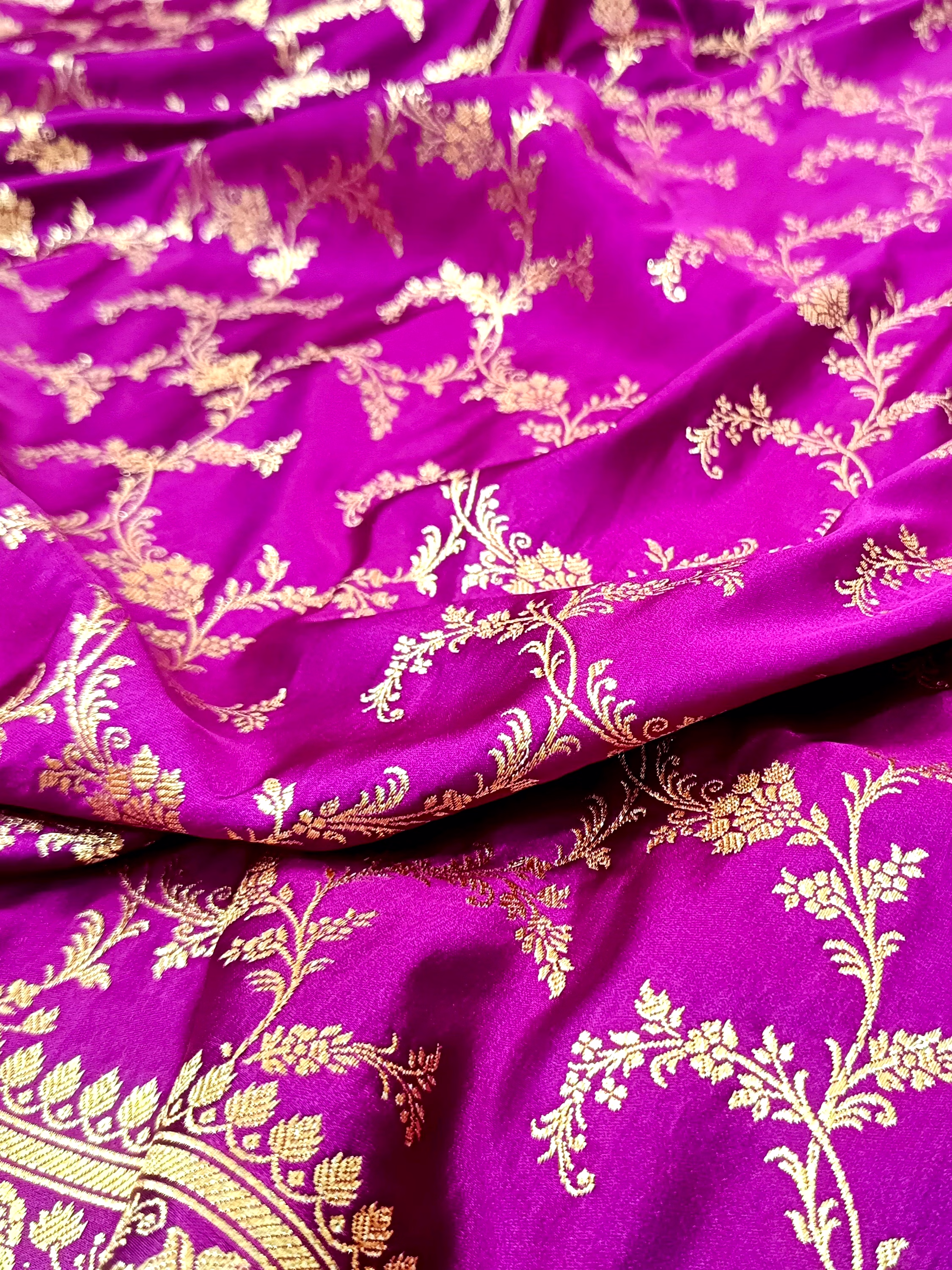 Versatile and elegant, this saree is perfect for both formal events and casual gatherings. Elevate your fashion game with the classic appeal of the Magenta Katan Silk Saree Jaal.