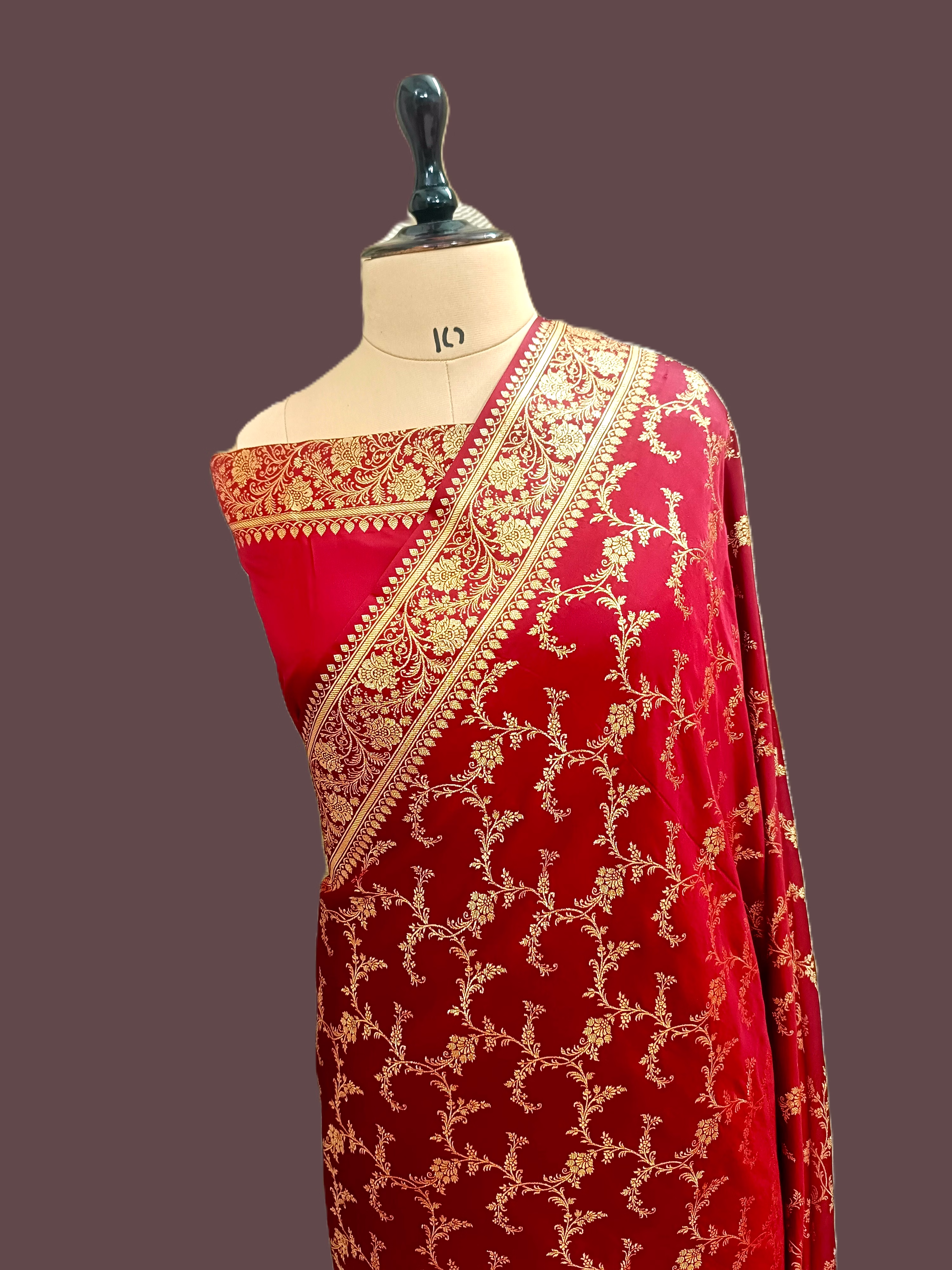 Indulge in the luxurious feel of the finest Katan Silk, meticulously designed to offer you unmatched comfort and style every time you drape it. The Banarasi Jaal intricately weaved into the saree adds a touch of sophistication that sets you apart in any gathering.