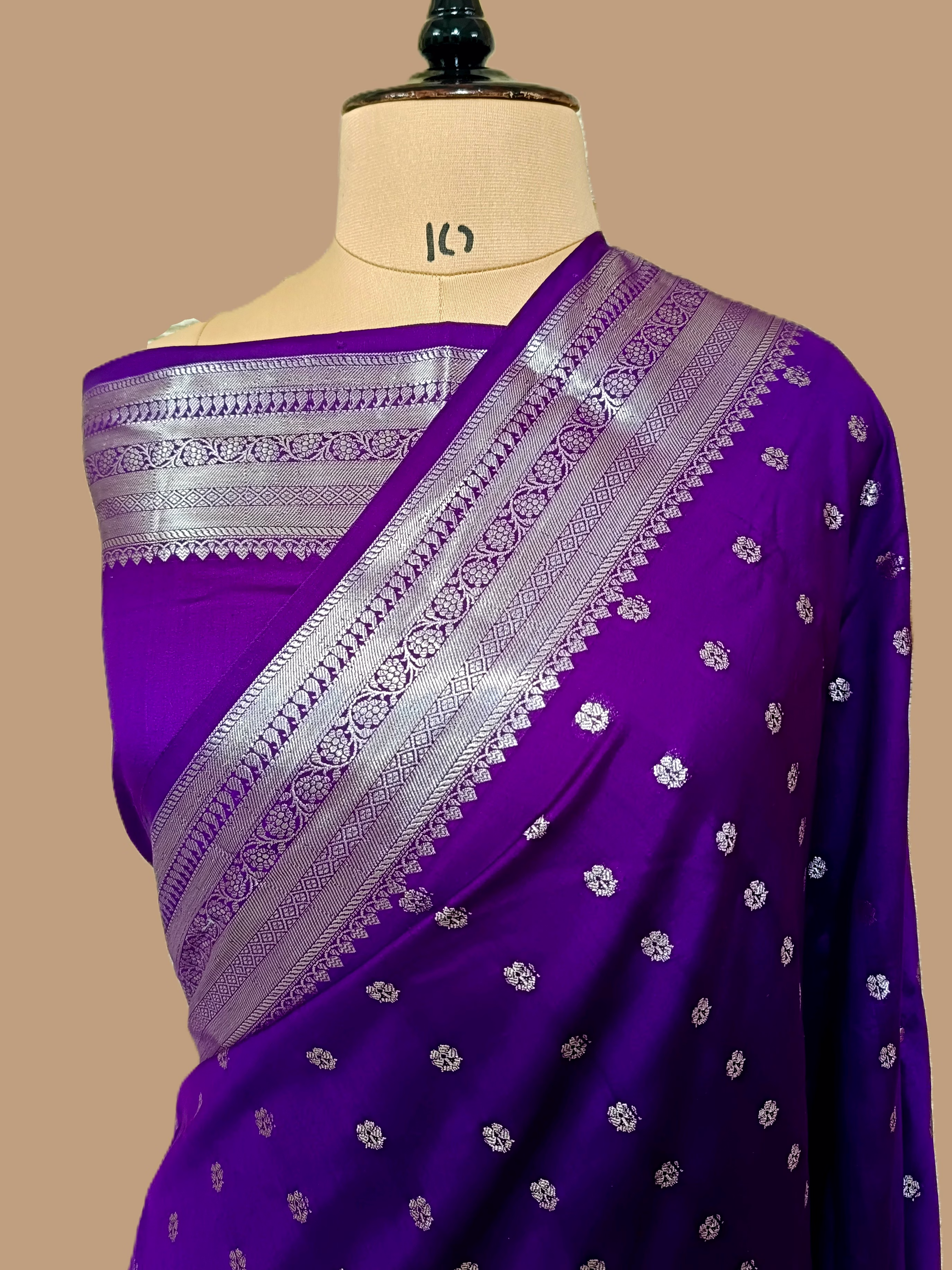 Wrapped in Pure Chiniya Silk, this saree drapes beautifully and feels luxurious against your skin. The purple hue adds a touch of regal sophistication, perfect for special occasions where you want to stand out.