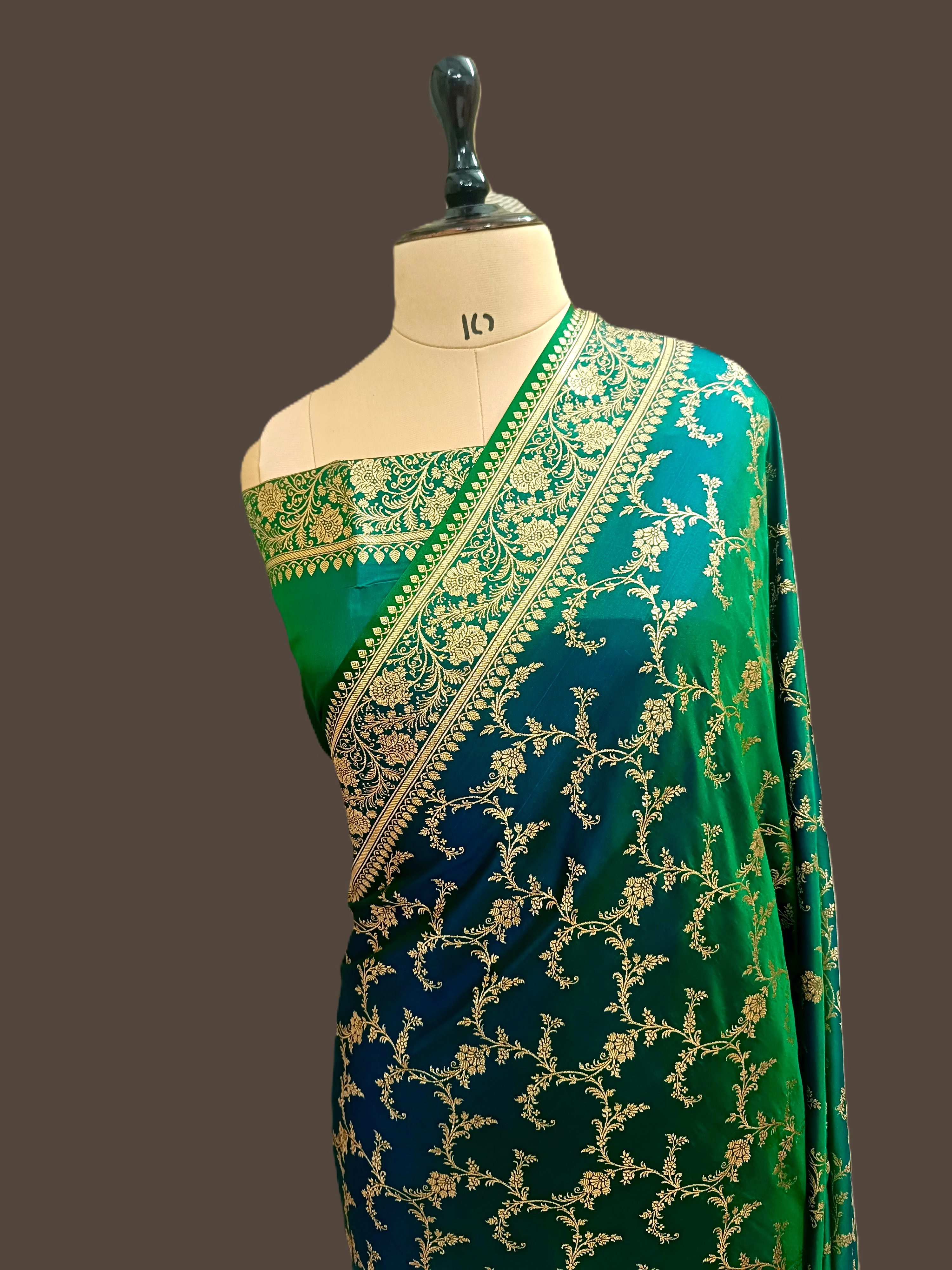 Step into the spotlight with our Rama Green Katan Silk Saree, a masterpiece of luxurious fabric and detailed banarasi Jaal weaving. From weddings to special occasions, make a statement of timeless elegance.